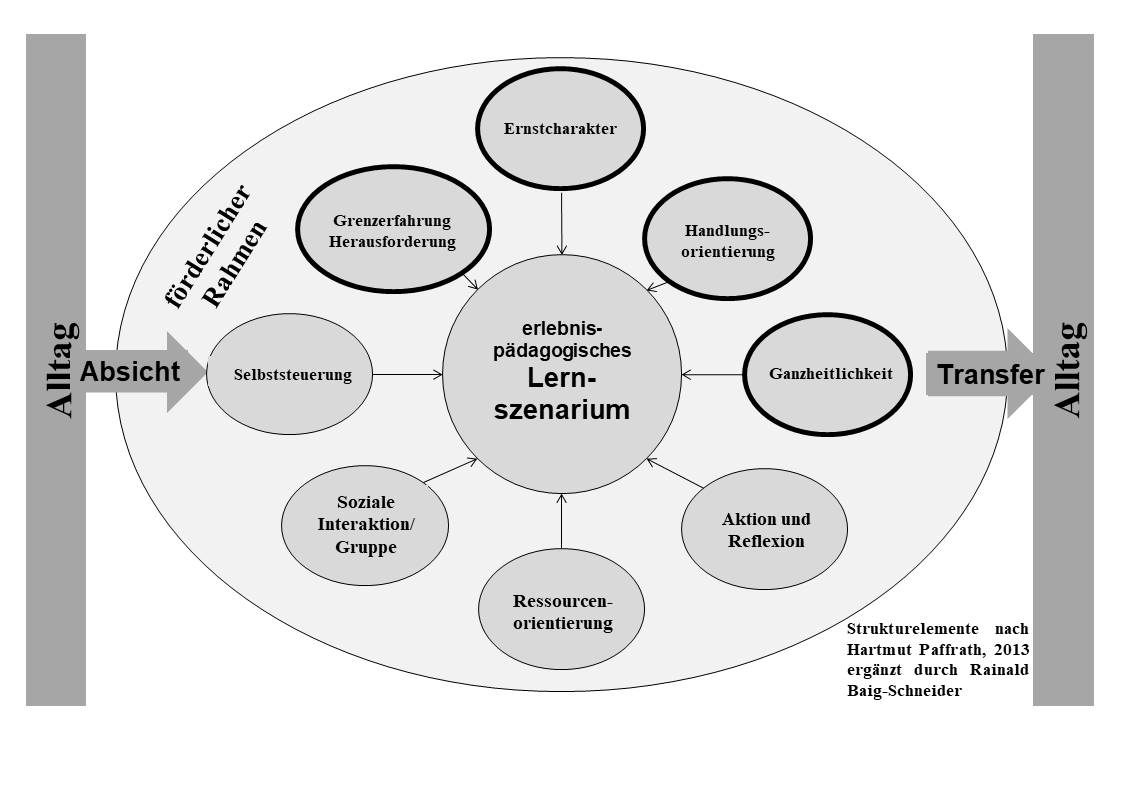 Erlebnispädagogik hat als gemeinsamen Bezug ein „ganzheitliches Menschenbild“. Was genau darunter verstanden wird, kann je nach Personen (persönliche Haltung) oder Organisationen (Leitbilder) sehr unterschiedlich ausfallen.